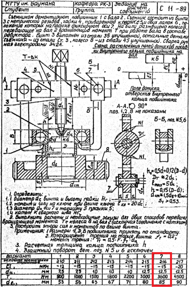 ДЗ С-11: Расчет соединений вариант 7