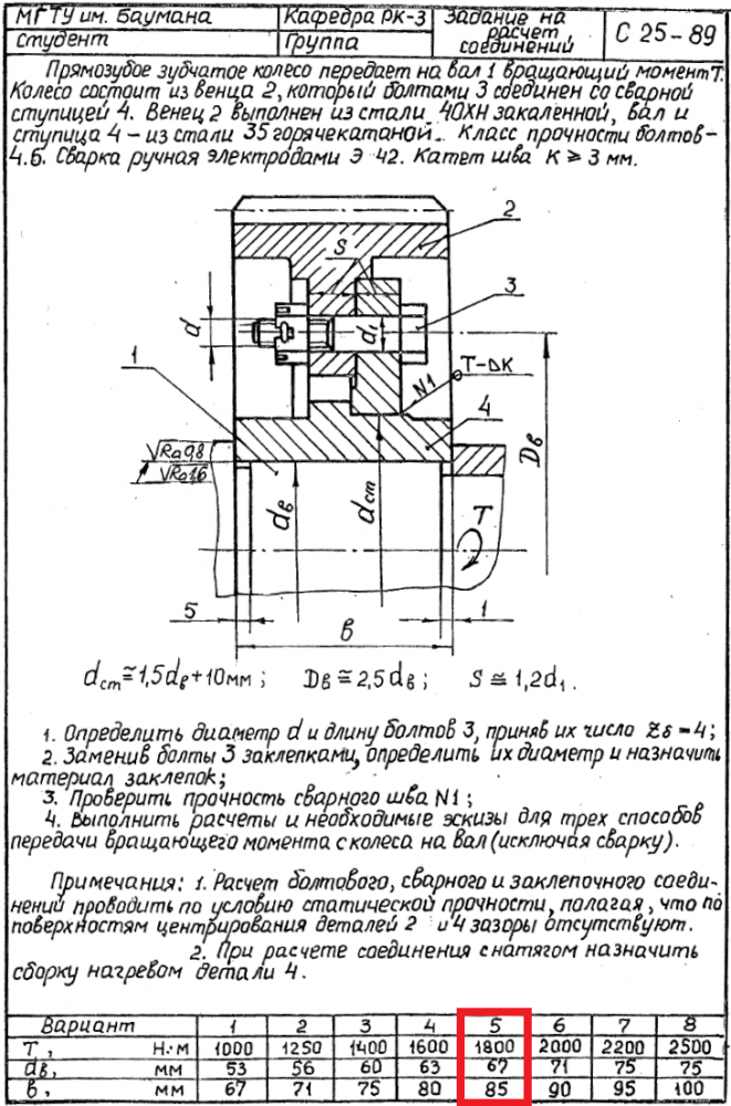 ДЗ С-25: Расчет соединений вариант 5