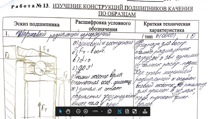 Лабораторная работа номер 13. Проверена и принята Блиновым. В работе содержится расшифровка и краткая характеристика основных типов подшипников качения. (типы, рассмотренные в данной работе, можно найти в соответствующей методичке)