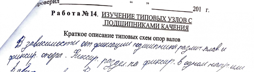 Лабораторная работа номер 14. Проверена и принята Блиновым. В данной работе отражены основные типы опор для различных подшипников, направление силовых факторов, а так же представлено описание типовых видов опор.