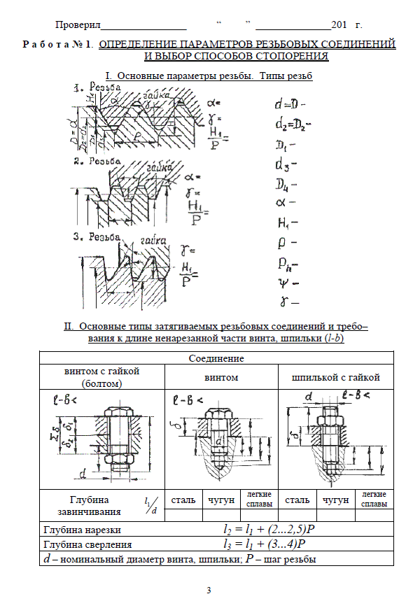Лабораторная работа 1: Определение параметров резьбовых соединений и выбор способов стопорения