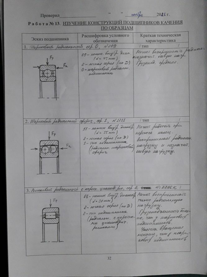 Лабораторная работа 13: Изучение конструкций подшипников качения по образцам