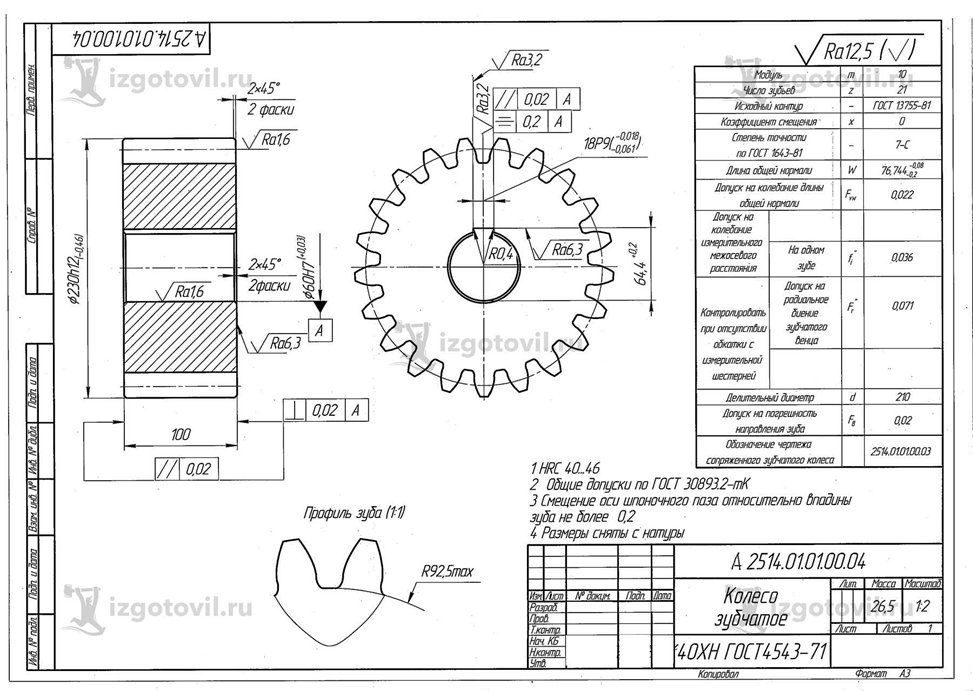 Наименование: Колесо зубчатое.
