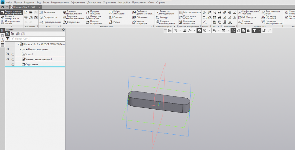 Шпонка 10 x 8 x 50 ГОСТ 23360-78.m3d