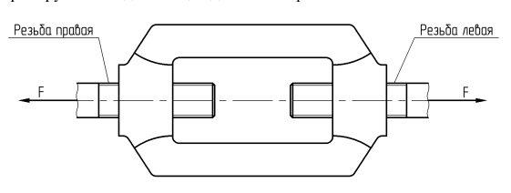 Задание. Резьбовые соединения. Винтовая стяжка (рис. 1.1) имеет левую и правую резьбы по ГОСТ 9150-2002. Рассчитать винт и гайку стяжки при условии, что сила, действующая на стяжку, F = 20 кН. Определить КПД винта. Коэффициент трения резьбы f = 0,16. Материал винта и гайки — сталь 35. Нагрузка статическая. Затяжка неконтролируемая. Недостающие данные выбрать самостоятельно.