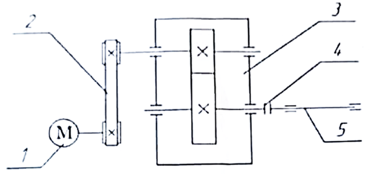 Спроектировать привод машины, состоящий из ременной передачи и зубчатого одноступенчатого цилиндрического косозубого редуктора, кинематическая схема приведена на рисунке