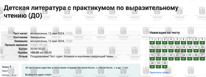 Ответы к заданиям 1: НСПК |Тест №1 Детская литература с практикумом по выразительному чтению (ДО) | 30 из 30 правильно вариант Любой