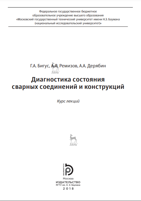 Для студентов МГТУ им. Н.Э.Баумана по предмету Диагностика состояния сварных соединений и конструкцийБигус, Ремизов, Дерябин - Диагностика состояния сварных соединений и конструкций. Курс лекцийБигус, Ремизов, Дерябин - Диагностика состояния сварных соединений и конструкций. Курс лекций