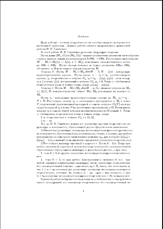 Для студентов МГУ им. Ломоносова по предмету Дифференциальная геометрияГеодезические на кусочно-гладких поверхностях постоянной кривизныГеодезические на кусочно-гладких поверхностях постоянной кривизны