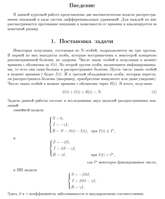 Курсовая работа: Математические модели распространения эпидемий