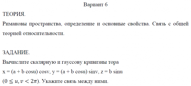 ДЗ: Решение задач дифференциальной геометрии и тензорного исчисления вариант 6