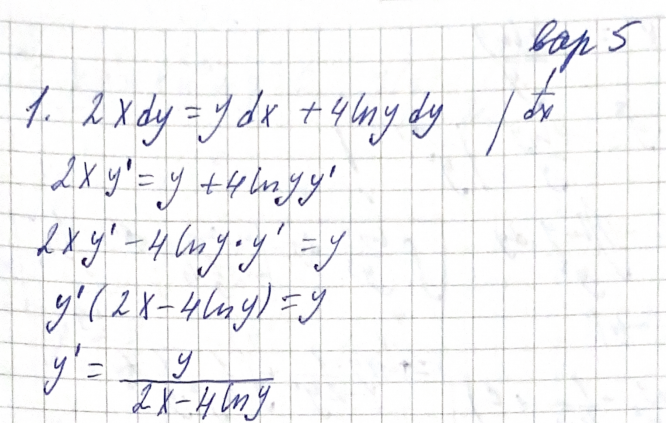 Ответы к контрольной работе 2: Дифференциальные уравнения вариант 5, 15, 25