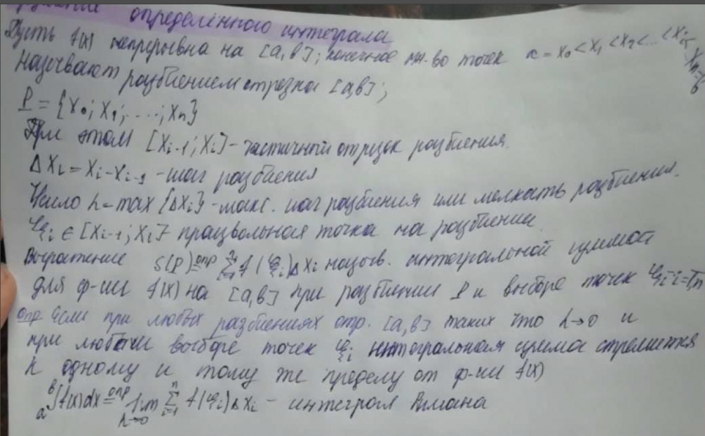 В файлах представлены ответы на вопросы к экзамену по ИиДУ для факультетов СМ, РК4, ИУ10 Есть рукописные ответы по лекциям и ответы по учебнику. Также прилагаются добытые билеты 2021 и 2020 годов. Список вопросов: Примеры ответов: Вопросы для подготовки к экзамену по дисциплине «Интегралы и дифф еренциальные уравн ения» Модул ьl. Интеграл ы 1. Сформулируйте определение определенного интеграла; его геометрический смысл . Дока.жите CRO Й CTIIO .П ИНС Йl·ЮСТИ ОПJ.ЮНСJТСННОГО И НТСГJ.)НJЩ. 2. Сформулируйте и докажите теорему об оценке определенного интеграла. 3. Сформулируйте и докажите свойство аддитивности определенного интеграла. 4. Сформулируйте и докажите теорему об интегрировании неравенств между функциями.