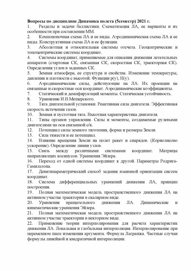 Для студентов МГТУ им. Н.Э.Баумана по предмету Динамика полётаТеория к экзаменуТеория к экзамену
