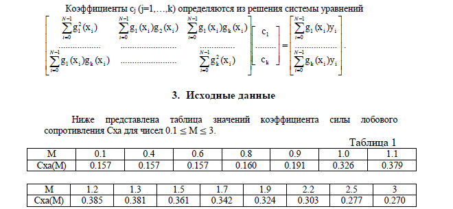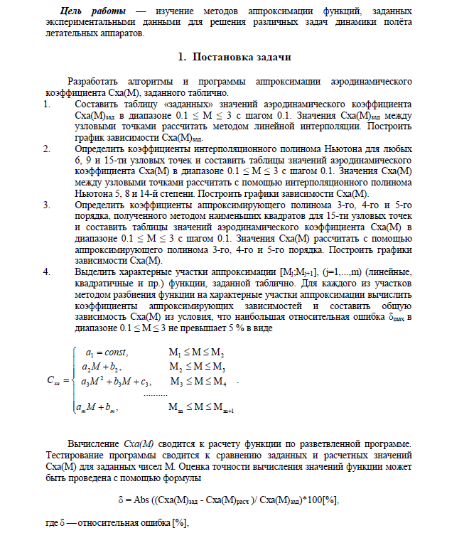 Для студентов МГТУ им. Н.Э.Баумана по предмету Динамика полётаСамостоятельная работа №2 "Составление программы аппроксимации коэффициента силы лобового сопротивления, заданного таблично" (вариант №7)Самостоятельная работа №2 "Составление программы аппроксимации коэффициента силы лобового сопротивления, заданного таблично" (вариант №7)