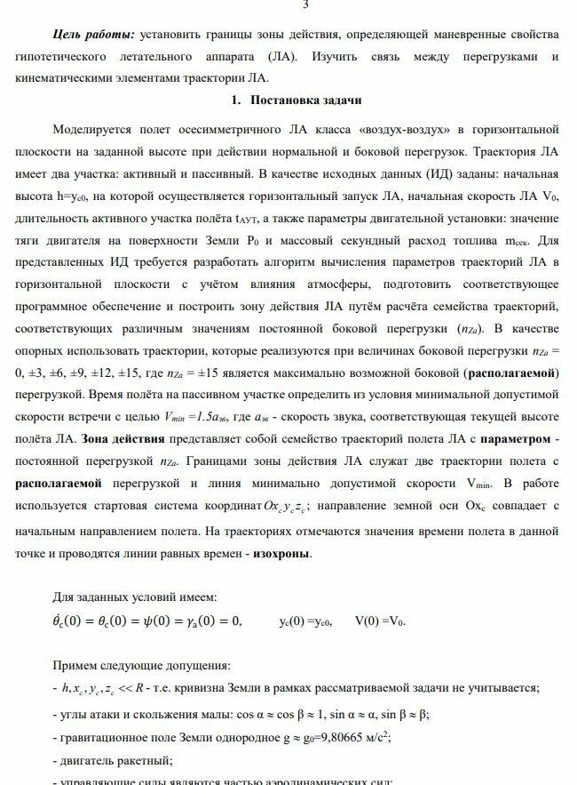 Цель работы: установить границы зоны действия, определяющей маневренные свойства гипотетического летательного аппарата (ЛА). Изучить связь между перегрузками и кинематическими элементами траектории ЛА.
