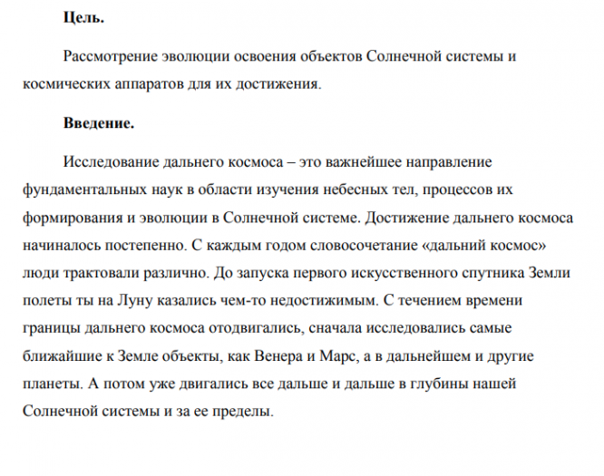 Введение. Исследование дальнего космоса – это важнейшее направление фундаментальных наук в области изучения небесных тел, процессов их формирования и эволюции в Солнечной системе. Достижение дальнего космоса начиналось постепенно. С каждым годом словосочетание «дальний космос» люди трактовали различно. До запуска первого искусственного спутника Земли полеты ты на Луну казались чем-то недостижимым. С течением времени границы дальнего космоса отодвигались, сначала исследовались самые ближайшие к Земле объекты, как Венера и Марс, а в дальнейшем и другие планеты. А потом уже двигались все дальше и дальше в глубины нашей Солнечной системы и за ее пределы