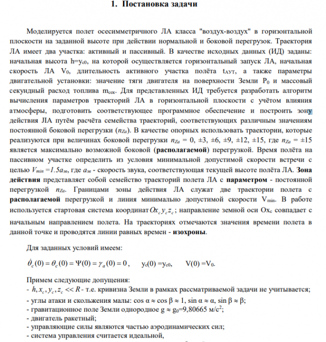 Цель работы: установить границы зоны действия, определяющей маневренные свойства гипотетического летательного аппарата (ЛА). Изучить связь между перегрузками и кинематическими элементами траектории ЛА.