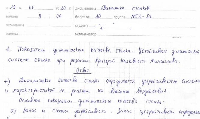 Для студентов МГТУ им. Н.Э.Баумана по предмету Динамика станковОтвет на билет вариант 10Ответ на билет вариант 10