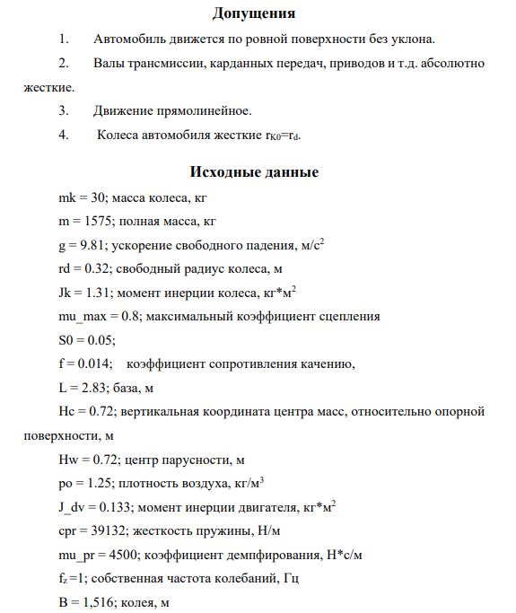 Для студентов МГТУ им. Н.Э.Баумана по предмету Динамика транспортных средствДомашнее задание (неизвестный вариант)Домашнее задание (неизвестный вариант)