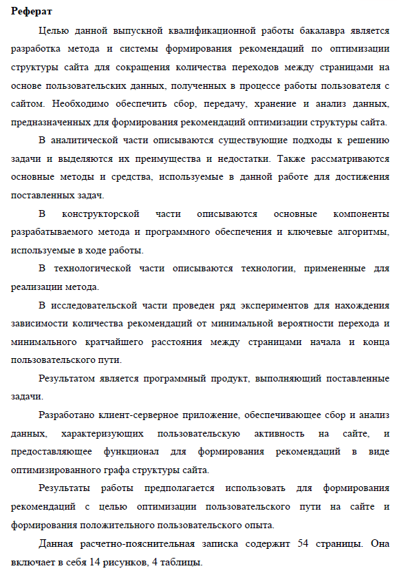 Главная » Учебные материалы » Дипломы и ВКР » Остальные учебные работы » МГТУ им. Н.Э.Баумана » 8 семестр » Метод формирования рекомендаций по изменению структуры сайта для сокращения количества переходов между страницами