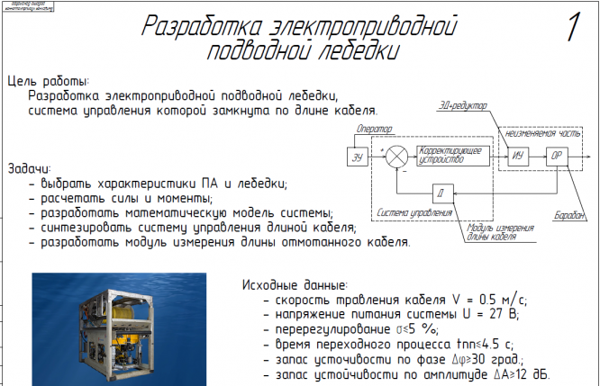 Другое: Разработка электроприводной подводной лебедки (презентация)