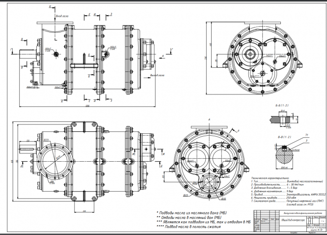 Выполнена выпускная квалификационная работа бакалавра в рамках которой спроектирован винтовой маслозаполненный компрессор с золотниковым регулированием для сжатия ПНГ.