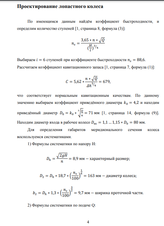 Мне на разработку был дан многоступенчатый лопастной насос, работающий на воде. Параметры насоса: . Для проектирования мною был выбран сегментный многоступенчатый насоса. Многоступенчатые насосы используется в тех случаях, когда необходим большой напор жидкости при большом расходе. Например:  оборудование автономной системы водоснабжения частного дома;  орошение и полив в сельском хозяйстве;  обеспечение бесперебойного водоснабжения в городском коммунальном хозяйстве;  автоматическое функционирование систем пожаротушения;  обеспечение работы шахтного водоотлива;  подпитывание паровых котлов котельных предприятий;  перекачивание неактивных химических жидкостей на производстве и прочее. В данной работе разрабатывается горизонтальный многоступенчатый центробежный насос для общего применения. Все расчёты приведены в данной расчётно-пояснительной записке.