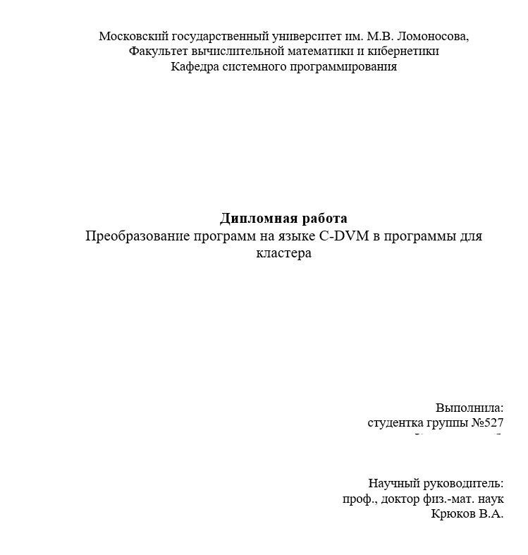 Для студентов МГУ им. Ломоносова по предмету Дипломы и ВКРПреобразование программ на языке C-DVM в программы для кластеровПреобразование программ на языке C-DVM в программы для кластеров