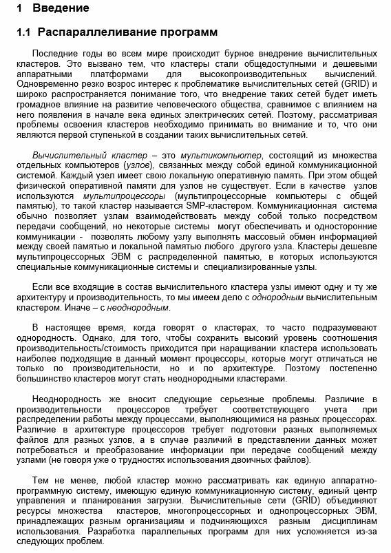 Последние годы во всем мире происходит бурное внедрение вычислительных кластеров. Это вызвано тем, что кластеры стали общедоступными и дешевыми аппаратными платформами для высокопроизводительных вычислений. Одновременно резко возрос интерес к проблематике вычислительных сетей (GRID) и широко распространяется понимание того, что внедрение таких сетей будет иметь громадное влияние на развитие человеческого общества, сравнимое с влиянием на него появления в начале века единых электрических сетей. Поэтому, рассматривая проблемы освоения кластеров необходимо принимать во внимание и то, что они являются первой ступенькой в создании таких вычислительных сетей.