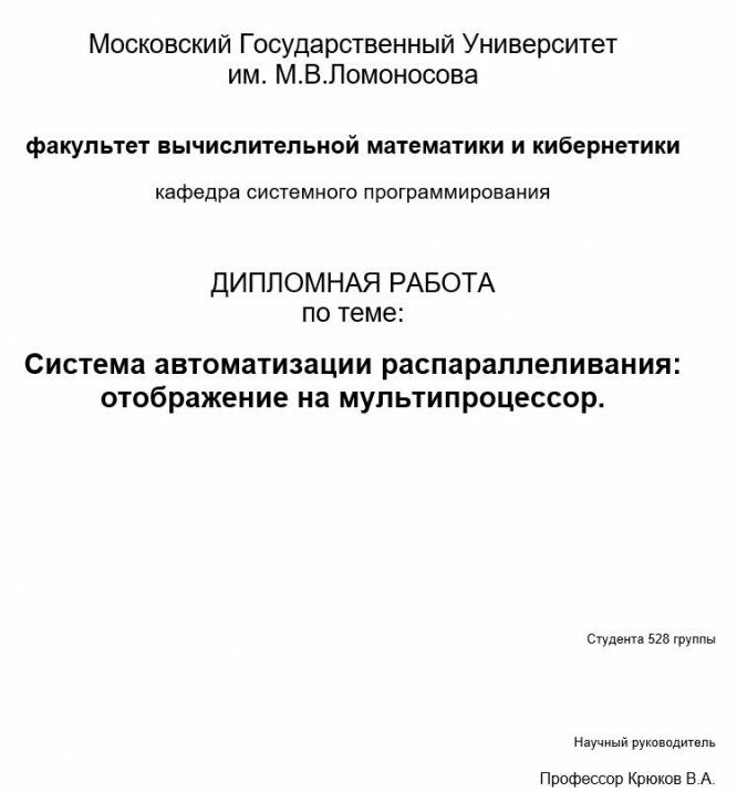 Для студентов МГУ им. Ломоносова по предмету Дипломы и ВКРСистема автоматизации распараллеливания - отображение на мультипроцессорСистема автоматизации распараллеливания - отображение на мультипроцессор