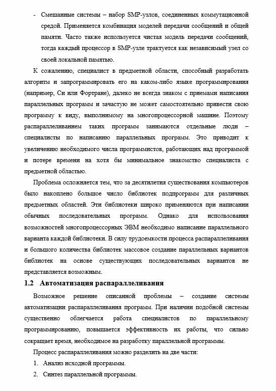 Возможное решение описанной проблемы – создание системы автоматизации распараллеливания программ. При наличии подобной системы существенно облегчается работа специалистов по параллельному программированию, повышается эффективность их работы, что сильно сокращает время, необходимое на разработку параллельной программы.