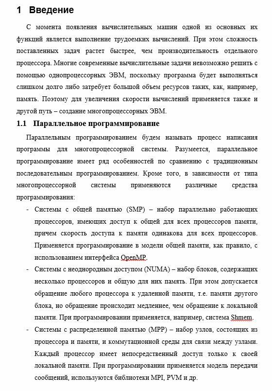 С момента появления вычислительных машин одной из основных их функций является выполнение трудоемких вычислений. При этом сложность поставленных задач растет быстрее, чем производительность отдельного процессора. Многие современные вычислительные задачи невозможно решить с помощью однопроцессорных ЭВМ, поскольку программа будет выполняться слишком долго либо затребует большой объем ресурсов таких, как, например, память. Поэтому для увеличения скорости вычислений применяется также и другой путь – создание многопроцессорных ЭВМ.