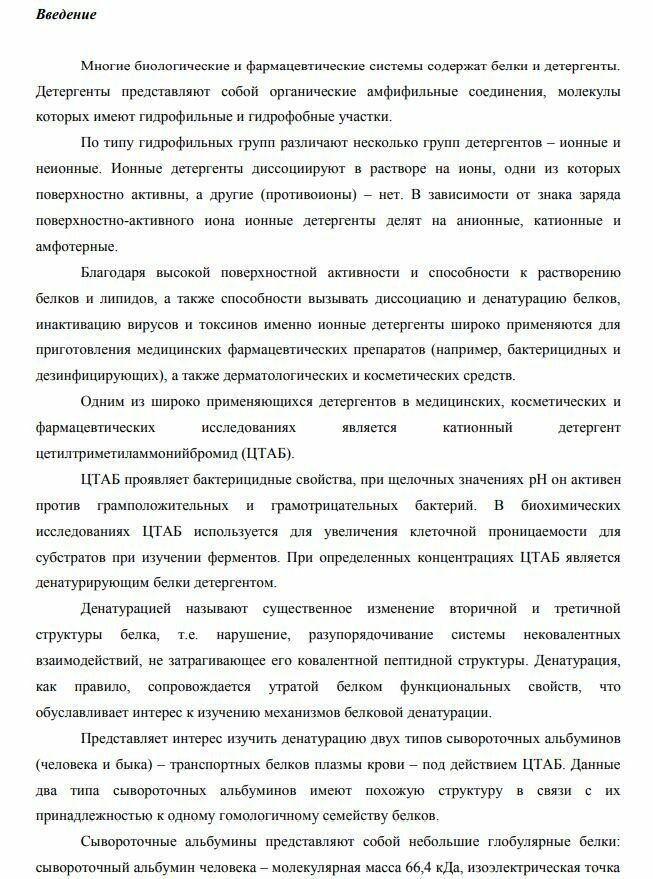 Для студентов МГУ им. Ломоносова по предмету Дипломы и ВКРДенатурация сывороточных альбуминов под действием ионного детергента цетилтриметиламмонийбромидаДенатурация сывороточных альбуминов под действием ионного детергента цетилтриметиламмонийбромида