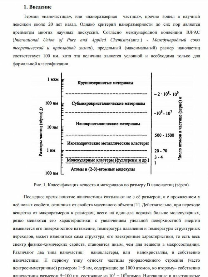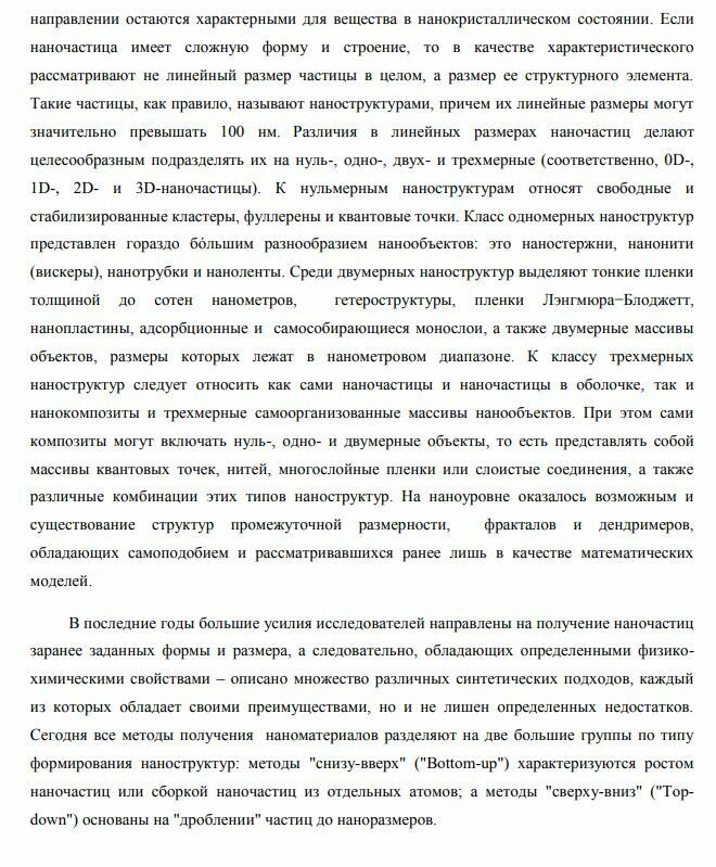 Термин «наночастица», или «наноразмерная частица», прочно вошел в научный лексикон около 20 лет назад. Однако критерий наноразмерности до сих пор является предметом многих научных дискуссий. Согласно международной конвенции IUPAC (International Union of Pure and Applied Chemistry(англ.) - Международный союз теоретической и прикладной химии), предельный (максимальный) размер наночастиц соответствует 100 нм, хотя эта величина является условной и необходима только для формальной классификации.Последнее время понятие наночастицы связывают не с её размером, а с проявлением у неё новых свойств, отличных от свойств массивного объекта [1]. Действительно, при переходе вещества от макроразмеров к размерам, всего на один-два порядка больше молекулярных, резко меняются его характеристики: с увеличением удельной поверхностной энергии изменяется его поверхностное натяжение, температура плавления и температуры структурных переходов, может измениться сама структура, его электронные характеристики, то есть весь спектр физико-химических свойств, становится иным, чем для веществ в макросостоянии. Различают два типа наночастиц: нанокластеры, или нанокристаллы, и собственно наночастицы. К первому типу относят частицы упорядоченного строения (часто центросимметричные) размером 1−5 нм, содержащие до 1000 атомов, ко второму– собственно наночастицы размером 5−100 нм, состоящие из 103 − 108 атомов. Нитевидные и пластинчатые частицы могут содержать гораздо большее количество атомов и иметь один или даже два линейных размера, превышающих пороговое значение, но их свойства в определенном направлении остаются характерными для вещества в нанокристаллическом состоянии. Если наночастица имеет сложную форму и строение, то в качестве характеристического рассматривают не линейный размер частицы в целом, а размер ее структурного элемента. Такие частицы, как правило, называют наноструктурами, причем их линейные размеры могут значительно превышать 100 нм. Различия в линейных размерах наночастиц делают целесообразным подразделять их на нуль-, одно-, двух- и трехмерные (соответственно, 0D-, 1D-, 2D- и 3D-наночастицы). К нульмерным наноструктурам относят свободные и стабилизированные кластеры, фуллерены и квантовые точки. Класс одномерных наноструктур представлен гораздо бóльшим разнообразием нанообъектов: это наностержни, нанонити (вискеры), нанотрубки и наноленты. Среди двумерных наноструктур выделяют тонкие пленки толщиной до сотен нанометров, гетероструктуры, пленки Лэнгмюра−Блоджетт, нанопластины, адсорбционные и самособирающиеся монослои, а также двумерные массивы объектов, размеры которых лежат в нанометровом диапазоне. К классу трехмерных наноструктур следует относить как сами наночастицы и наночастицы в оболочке, так и нанокомпозиты и трехмерные самоорганизованные массивы нанообъектов. При этом сами композиты могут включать нуль-, одно- и двумерные объекты, то есть представлять собой массивы квантовых точек, нитей, многослойные пленки или слоистые соединения, а также различные комбинации этих типов наноструктур. На наноуровне оказалось возможным и существование структур промежуточной размерности, фракталов и дендримеров, обладающих самоподобием и рассматривавшихся ранее лишь в качестве математических моделей.