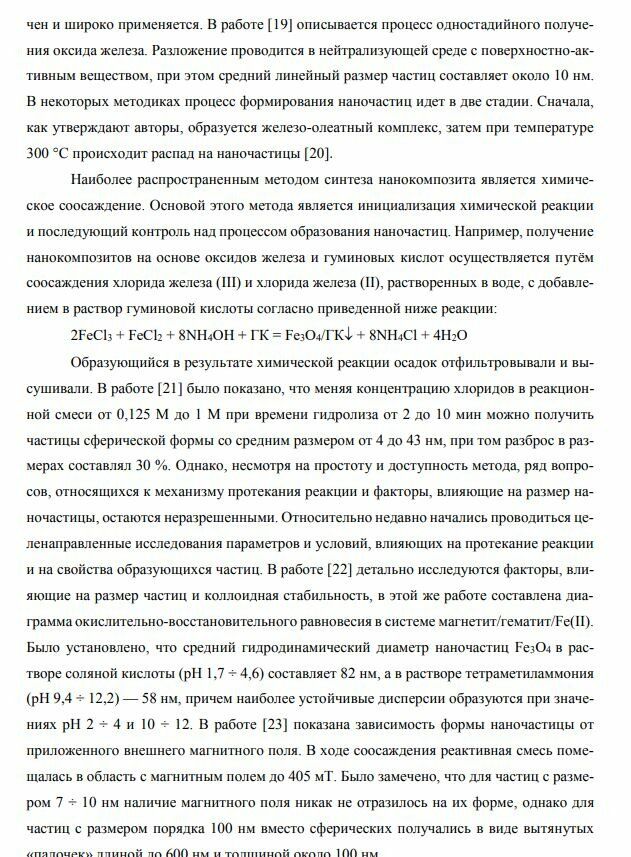 Технологии получения нанокомпозитов можно разделить на две категории. В первом случае, сборка нанокомпозита идет снизу, с остановкой роста фазы с помощью поверхностно-активного вещества или другого метода. Во втором случае происходит измельчение образцов массивного вещества. В получении нанокомпозитов большое внимание уделяется получению частиц заданного размера и формы, дисперсия по размерам которых не должна превышать 5 ÷ 10 %. Для исключения межчастичного взаимодействия и регулирования межчастичного расстояния, частицы помещают в стабилизирующую среду или матрицу. Одним из самых первых методов получения отдельных, не искаженных влиянием внешней среды частиц является метод «молекулярных пучков» [15]. На частицах, полученных этим методом, впервые были проведены исследования магнитных характеристик. Наночастицы можно получать из пересыщенных паров металла. Такая методика основана на классической теории нуклеации, согласно которой образующаяся фаза имеет сферическую форму. В такой технологии возможны лазерное испарение [16, 15] и термическое испарение под воздействием дугового разряда. После испарения металла пары исследуют в газовой фазе, либо осаждают на подложку или в матрицу инертных газов для стабилизации частиц. Для такого метода характерно получение химически чистых, без примесей и неоднородностей наночастиц. В работе [17] продемонстрирована возможность получения наночастиц оксидов железа путем разложения карбонила железа под действием ультразвука. В результате распада в среде поверхностно-активного вещества образовывались наночастицы маггемита с аморфной структурой, причем размер наночастиц зависел от типа поверхностноактивного вещества и концентрации [18]. Среди методов химического синтеза магнитных наночастиц большую популярность имеет метод термолиза металлсодержащих соединений. Этот метод подробно изу