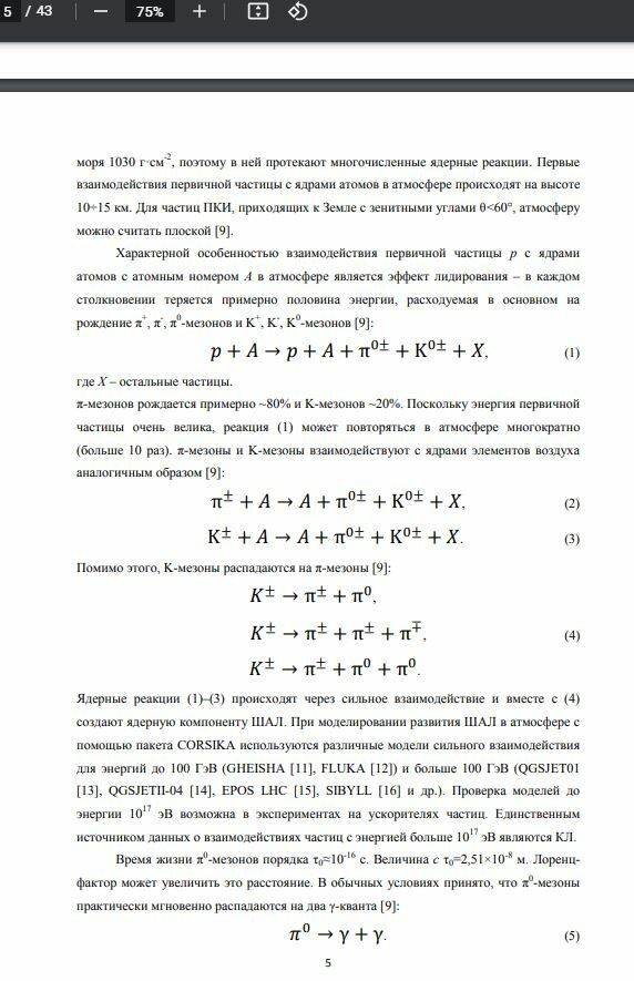 Толща межзвездного вещества, пройденного частицами ПКИ до попадания в земную атмосферу, оценивается в 5 г·см-2 . Из-за ядерных реакций в этом межзвездном веществе генерируются потоки вторичных ядер, позитронов, электронов и γ-квантов [10]. Толща вещества, на которой адрон может испытать в среднем одно ядерное взаимодействие, определяется пробегом в ~100 г·см-2 . Толща атмосферы до уровня