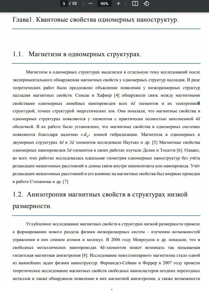 Магнетизм в одномерных структурах выделился в отдельную тему исследований после экспериментального обнаружения магнитных свойств у одномерных структур палладия. В ряде теоретических работ было предложено объяснение появления у низкоразмерных структур палладия магнитных свойств. Списак и Хафнер [4] обнаружили связь между магнитными свойствами одномерных линейных нанопроводов всех 4d элементов и их электронной структурой, точнее структурой энергетических зон. Они показали, что магнитные свойства в одномерных структурах появляются у элементов с практически полностью заполненной 4d оболочкой. В их работе было установлено, что магнитные свойства в одномерных системах появляются благодаря наличию s-݀௭ మ зонной гибридизации. Магнетизм в одномерных и двумерных структурах 4d и 5d элементов исследовали Наутьял и др. [5] Магнитные свойства одномерных нанопроводов 5d-элементов в своих работах изучали Делин и Тосатти [6]. Однако, во всех этих работах исследовалась идеальная геометрия одномерных наноструктур без учёта релаксации межатомных расстояний и длины связи внутри наноконтакта или нанопровода. Учёт релаксации межатомных расстояний и его влияние на магнитные свойства был впервые проведен в работе Степанюка и др. [7]