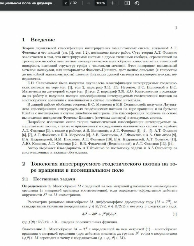 Для студентов МГУ им. Ломоносова по предмету Дипломы и ВКРТопологическая классификация интегрируемых геодезических потоков в потенциальном поле на двумерных многообразиях вращенияТопологическая классификация интегрируемых геодезических потоков в потенциальном поле на двумерных многообразиях вращения