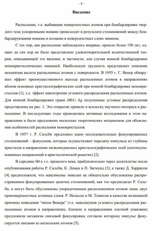 Распыление, т.е. выбивание поверхностных атомов при бомбардировке твердого тела ускоренными ионами происходит в результате столкновений между бомбардирующими ионами и атомами в поверхностных слоях мишени. С тех пор, как распыление наблюдалось впервые, прошло более 150 лет, однако до сих пор не было представлено удовлетворительной количественной теории, описывающей это явление, в частности, для случая ионной бомбардировки монокристаллических мишеней. Наибольшую трудность представляет описание механизма вылета распыленных атомов с поверхности. В 1955 г. Г. Венер обнаружил эффект преимущественного выхода распыленных атомов в направлениях вблизи основных кристаллографических осей при ионной бомбардировке монокристаллов [1], т.е. эффект анизотропии углового распределения распыленных атомов. Для ионной бомбардировки грани (001) Ag полученные угловые распределения представлены на рис. 1. Это открытие привело к всплеску научного интереса к распылению. В последующие годы проводились активные исследования в этом направлении и было предложено несколько теоретических механизмов для объяснения особенностей распыления монокристаллов. В 1957 г. Р. Силсби предложил идею последовательных фокусированных столкновений – фокусонов, которые осуществляют передачу импульса из глубины кристалла в направлении низкоиндексных кристаллографических осей (плотноупакованных направлений в кристаллической решетке) [2]. В середине 60-х г.г. прошлого века, приблизительно через десятилетие после опубликования работы Р. Силсби, К. Леман и П. Зигмунд [3], а также Д. Харрисон [4] предположили, что максимумы эмиссии не обязательно обусловлены распространением фокусированных цепочек столкновений, как это предполагал Р. Силсби, а могут быть обусловлены упорядоченным расположением атомов лишь двух приповерхностных атомных слоев. Р. Нельсон и М. Томпсон в качестве возможной причины появления “пятен Венера” (т.е. максимумов углового распределения распыленных атомов в направлениях, близких к направлениям плотной упаковки) предложили механизм линзовой фокусировки, согласно которому импульс фокусируется линзами из нескольких атомов [5]. Однако в этих механизмах не учитывается изменение траектории эмитируемого атома в процессе его вылета с поверхности кристалла, за исключением учета роли плоского или сферического потенциального барьера. Однако известно, что траектории атомов могут меняться более сложным образом, чем просто преодоление поверхностного потенциального барьера [6-7]. До настоящего времени не выяснен вид дважды дифференциального распределения атомов, эмитируемых с поверхности монокристалла, по полярному и азимутальному углам. Компьютерное моделирование распыления позволяет определить, насколько сильно наблюдаемое распределение эмитированных атомов по углам зависит от вида распределения атомов, покидающих поверхность кристалла. Также представляет интерес задача о восстановлении исходного распределения атомов, сформировавшегося в каскаде столкновений, по наблюдаемому распределению распыленных атомов. В ряде работ изучались эффекты, обусловленные рассеянием эмитируемых атомов в процессе вылета с поверхности: эффект блокировки и его роль в формировании угловых распределений распыленных атомов [8-10] и поверхностный механизм фокусиров