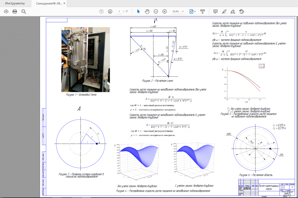 ВКР / Дипломная работа (Э-8) на тему "Нанесение равномерных оптических покрытий на оптические детали методом электронно-лучевого испарения"