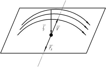1. В тангенциальном магнитном поле движение катодного пятна направлено противоположено вектору силы Ампера , где – ток дуги, – индукция магнитного поля. Данный эффект получил название "обратное движение" катодного пятна или эффект Штарка. Эффект Штарка проиллюстрирован на рисунке 4.