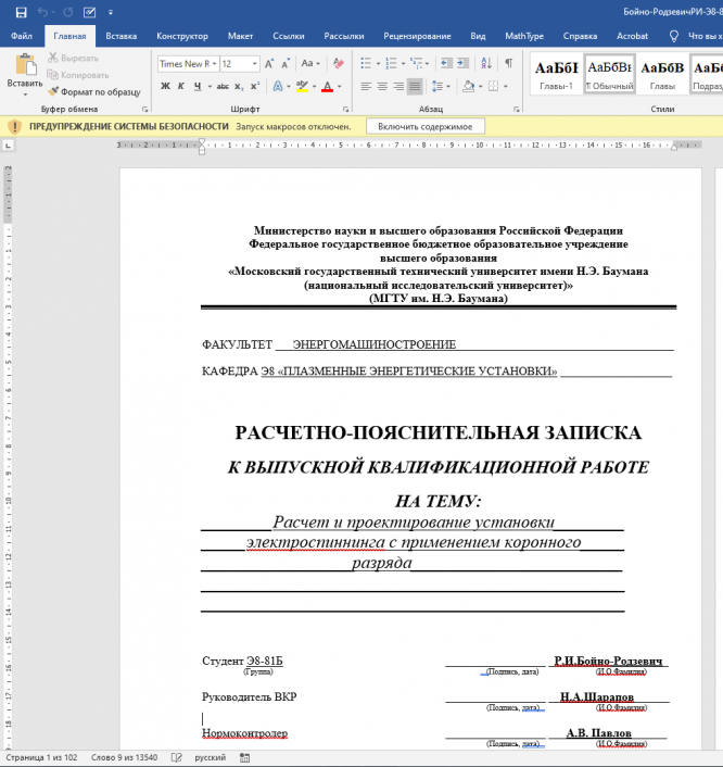 Обратите внимание, что данная работа уже сдавалась в МГТУ им. Н.Э.Баумана, а также её могли покупать другие студенты, поэтому её уникальность может быть нулевой. Для получения уникальной работы воспользуйтесь услугами.