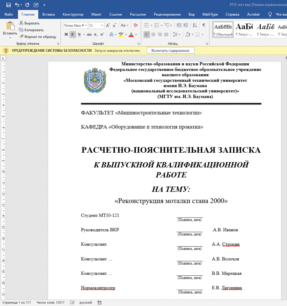 Обратите внимание, что данная работа уже сдавалась в МГТУ им. Н.Э.Баумана, а также её могли покупать другие студенты, поэтому её уникальность может быть нулевой. Для получения уникальной работы воспользуйтесь услугами.