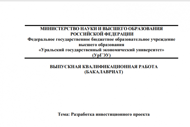 ВКР: Разработка инвестиционного проекта