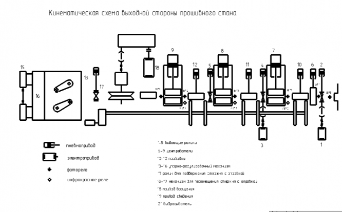 Выходная сторона прошивного стана предназначена для подвода к стану и поддержания стержня с оправкой при прошивке, приема гильзы во время и после прошивки, отвода стержня с оправкой и выброса прошитой гильзы с линии стана.