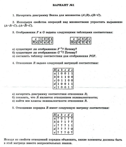 Для студентов МАИ по предмету Дискретная математикаИтоговая контрольная (вариант+решение)Итоговая контрольная (вариант+решение)