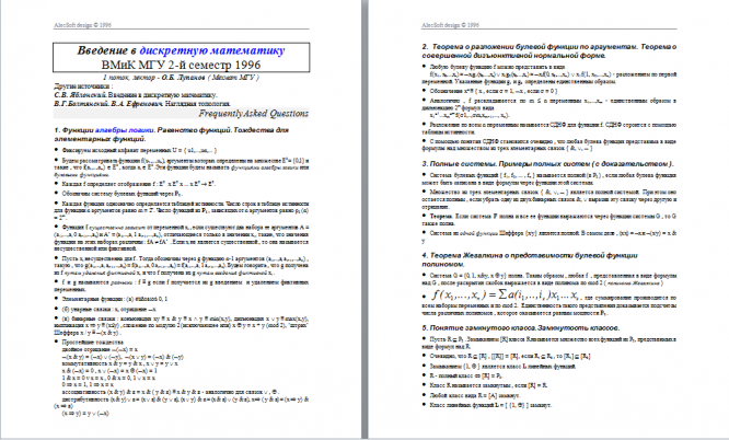 Для студентов МГУ им. Ломоносова по предмету Дискретная математикаОтветы (О.Б. Лупанов)Ответы (О.Б. Лупанов)