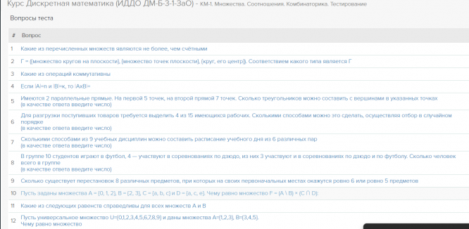 Ответы к контрольной работе КМ-1: Множества, Соотношения, Комбинаторика