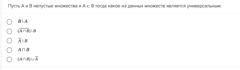 Пусть А и В непустые множества и В с А тогда какое из данных множеств является универсальным: